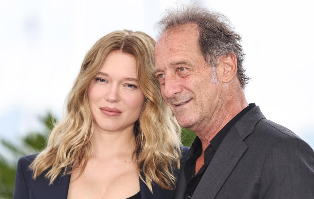 5月15日,在法國南部小城戛納舉行的第77屆戛納國際電影節上,開幕影片《第二幕》的主演、法國演員蕾雅·塞杜(左)和文森特·林頓亮相拍照式。新華社記者 高靜 攝