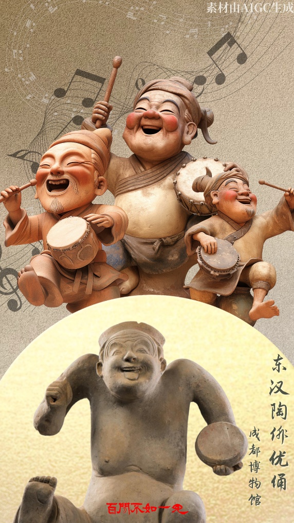 有請能說會唱、神態詼諧的東漢陶俳優俑