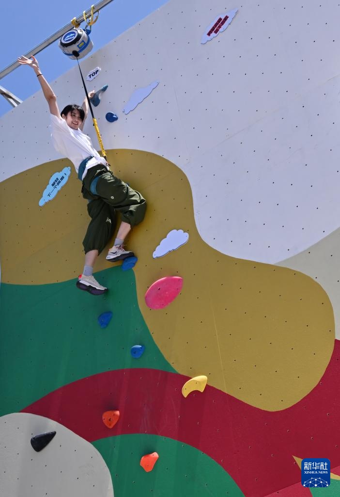 5月16日,趙麗娜在活動中體驗攀巖。新華社記者 陶希夷 攝