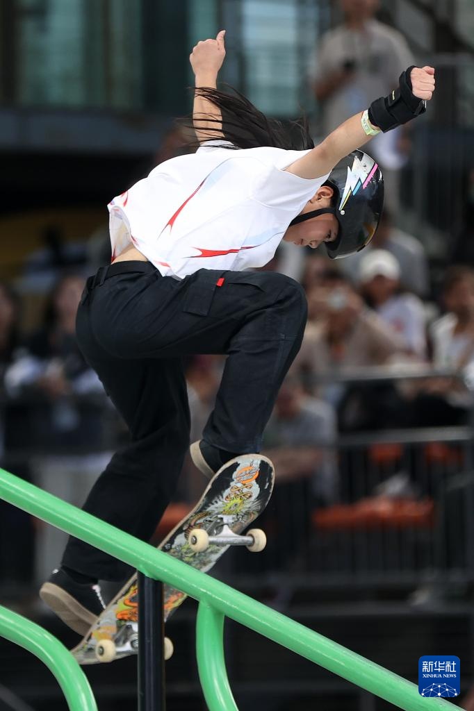 當日,巴黎奧運會資格系列賽上海站滑板女子街式預賽在上海舉行。