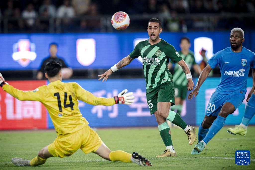 5月17日,浙江隊球員萊昂納多(左二)在比賽中射門。