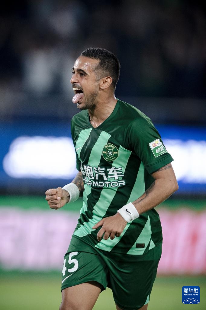 5月17日,浙江隊球員萊昂納多進球后慶祝。