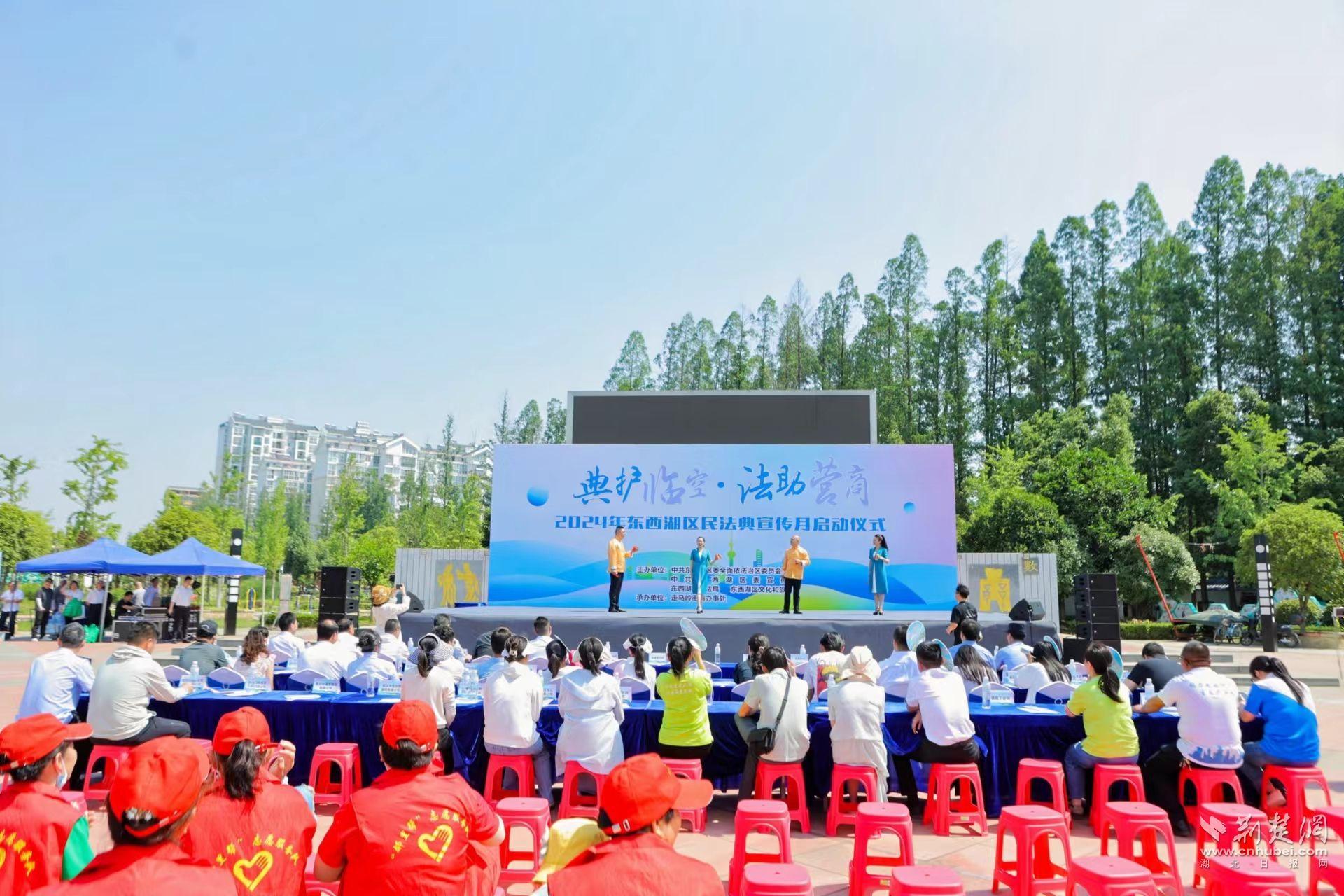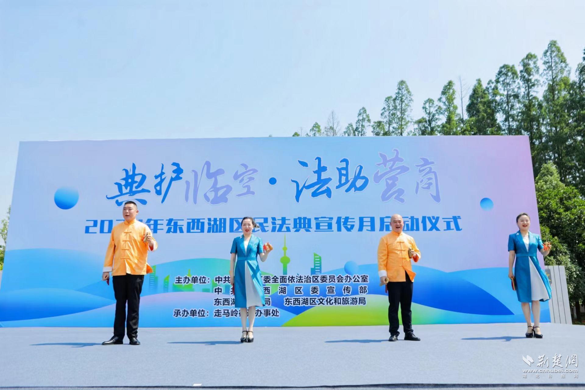 荊楚網(湖北日報網)訊(記者文放 通訊員羅晶潔)今年5月是第四個“民法典宣傳月”。為推動全區“民法典宣傳月”主題宣傳活動走深走實,5月17日,東西湖區“典護臨空·法助營商”——2024年東西湖區民法典宣傳月啟動儀式在走馬嶺法治文化廣場舉行。武漢市司法局黨委委員、副局長劉新濤出席活動并致辭,區委宣傳部副部長高陽洋宣布活動啟動。該活動由區委依法治區辦、區委宣傳部、區司法局、區文化和旅游局主辦,走馬嶺街道辦事處承辦,守法普法協調小組成員單位、區直各有關單位和轄區企業等52家單位參加。