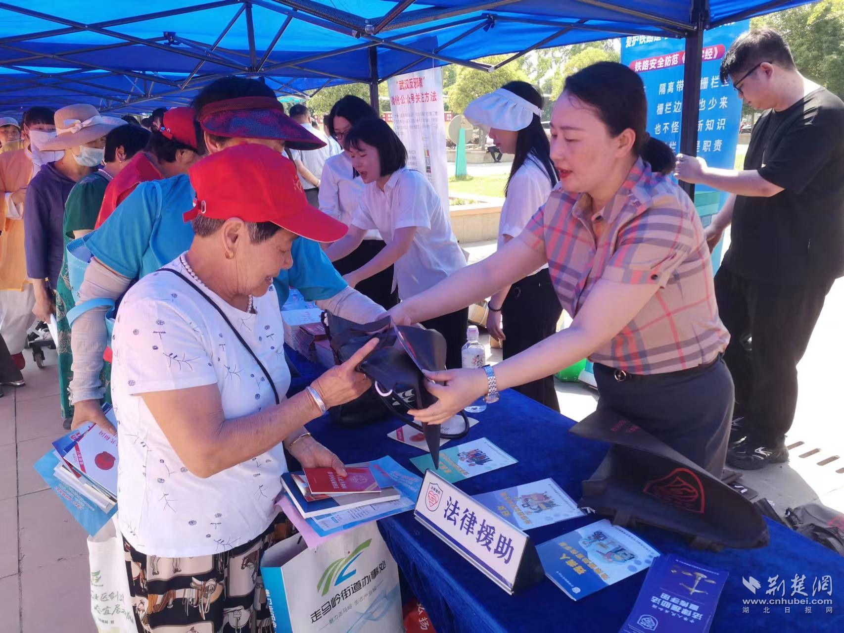 在集中宣傳區域,各單位響應“普法集市”號召,集中擺放宣傳“攤位”,通過向企業代表和群眾介紹宣傳展板、講解宣傳冊、發放宣傳品、業務骨干現場解答咨詢等方式,宣傳普及了《中華人民共和國民法典》《優化營商環境條例》《中華人民共和國法律援助法》以及防范電信網絡詐騙、謹防養老詐騙、安全生產等法律知識。