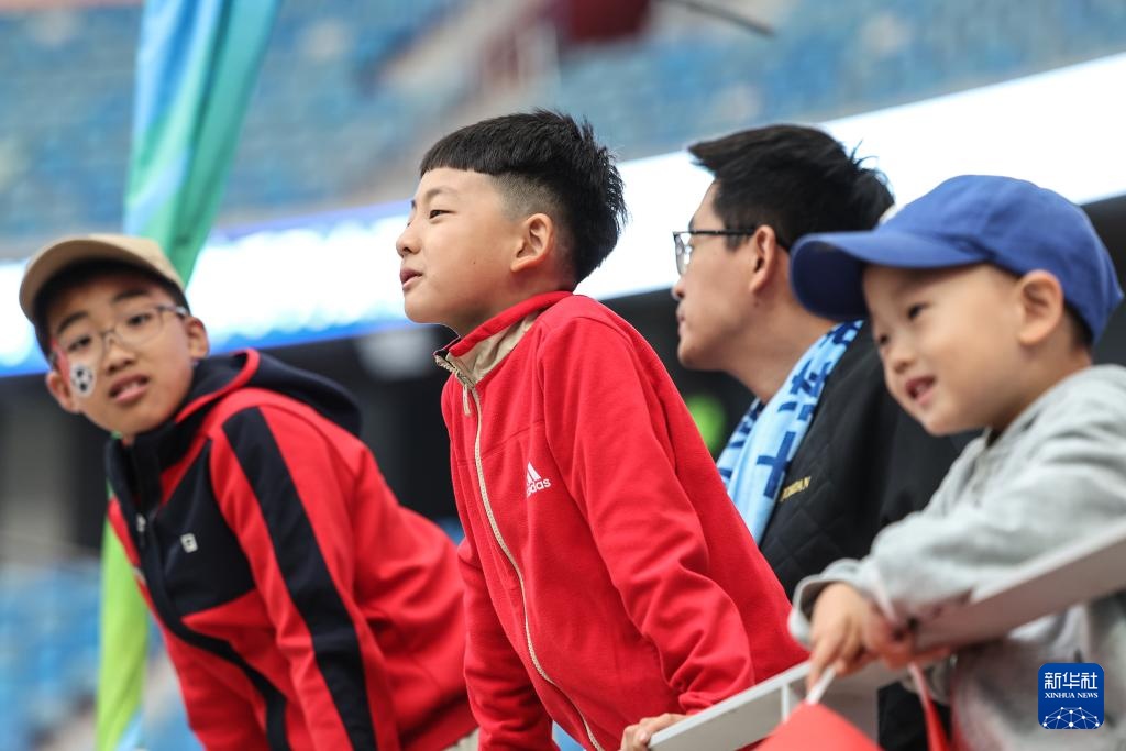 5月18日,小球迷在場邊觀賽。新華社記者 潘昱龍 攝