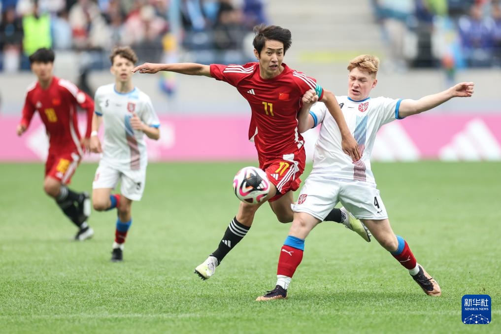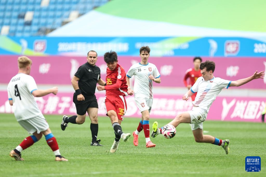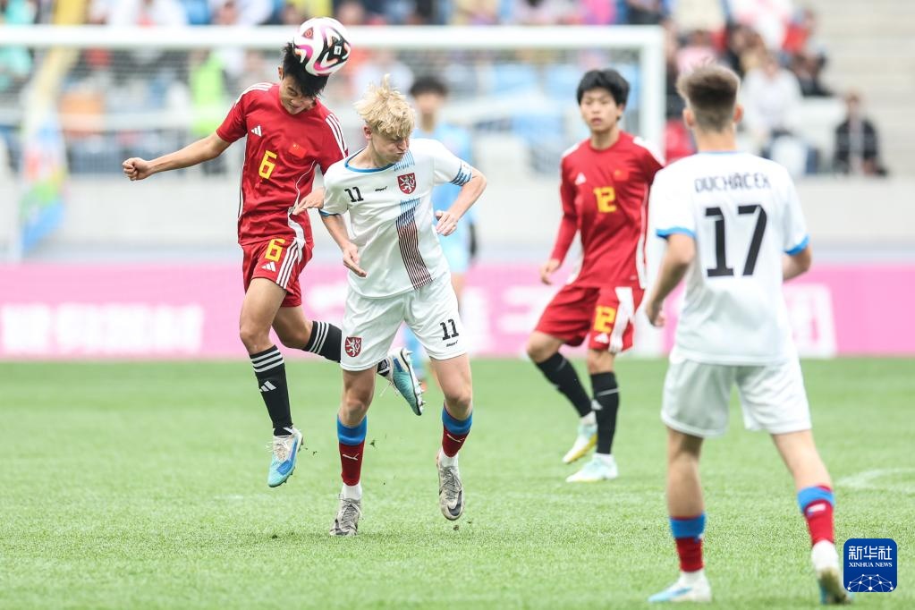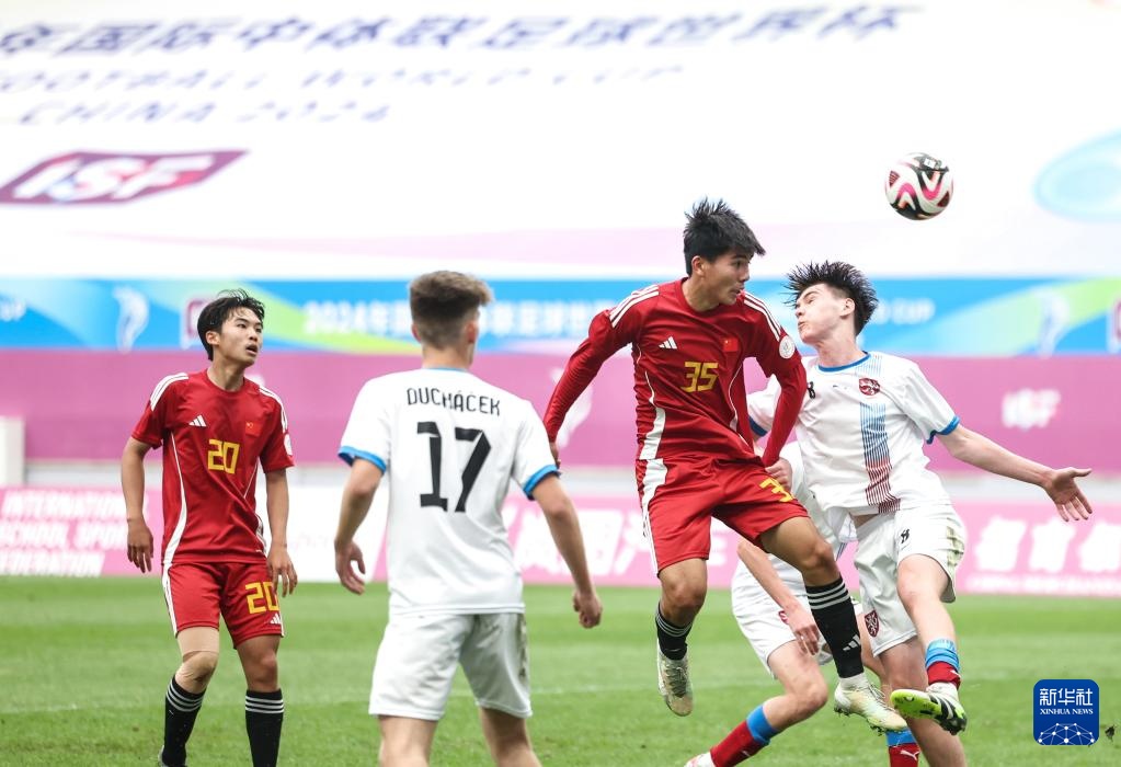 當日,2024年國際中體聯足球世界杯揭幕戰在遼寧大連梭魚灣足球場舉行,中國中學生男子足球三隊7比2戰勝捷克中學生男子足球一隊。
