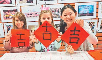 塞爾維亞諾維薩德大學(xué)孔子學(xué)院師生展示書法作品。 趙路航攝 |