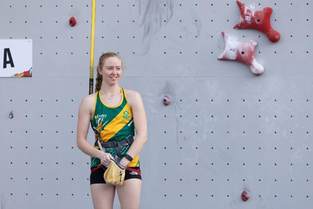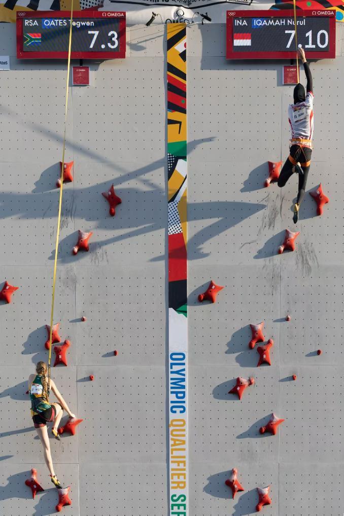 速度攀巖的決賽階段通常需要16名選手進行兩兩對決的淘汰賽,奧茨說,由于非洲的攀巖運動員不多,所以在洲際比賽中,如果她多比一項速度賽,有時就意味著非洲能多擁有一次人數(shù)相對完整的速度決賽。“這對于非洲攀巖來說是意義重大的。在我的祖國南非,我們有著很棒的自然巖壁攀巖資源,但是競技攀巖還很落后。像很多人一樣,我想推廣這項美麗的運動。”