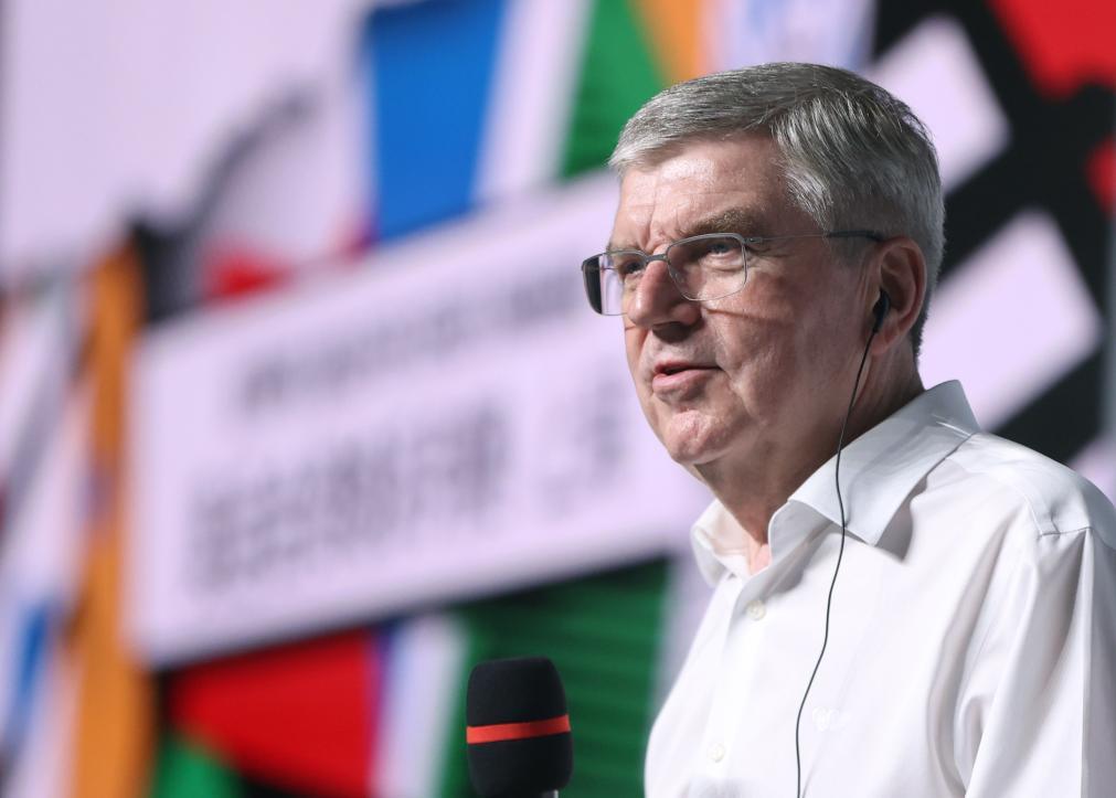 5月19日,國際奧委會主席巴赫在新聞中心回答記者提問。新華社記者 賈浩成 攝