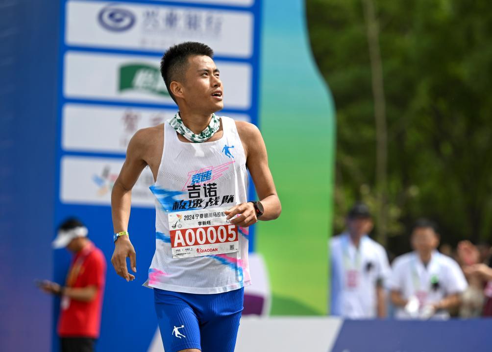 5月19日,中國選手李新旺在沖過終點后。新華社記者 馮開華 攝