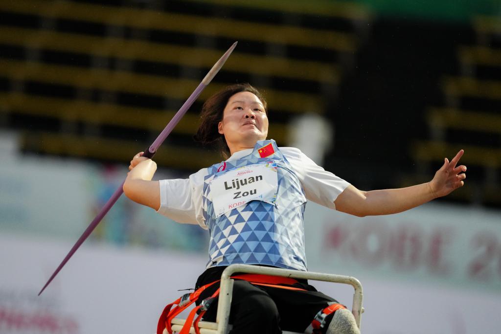 5月19日,鄒莉娟在女子標槍F34級別決賽中。新華社記者 張笑宇 攝