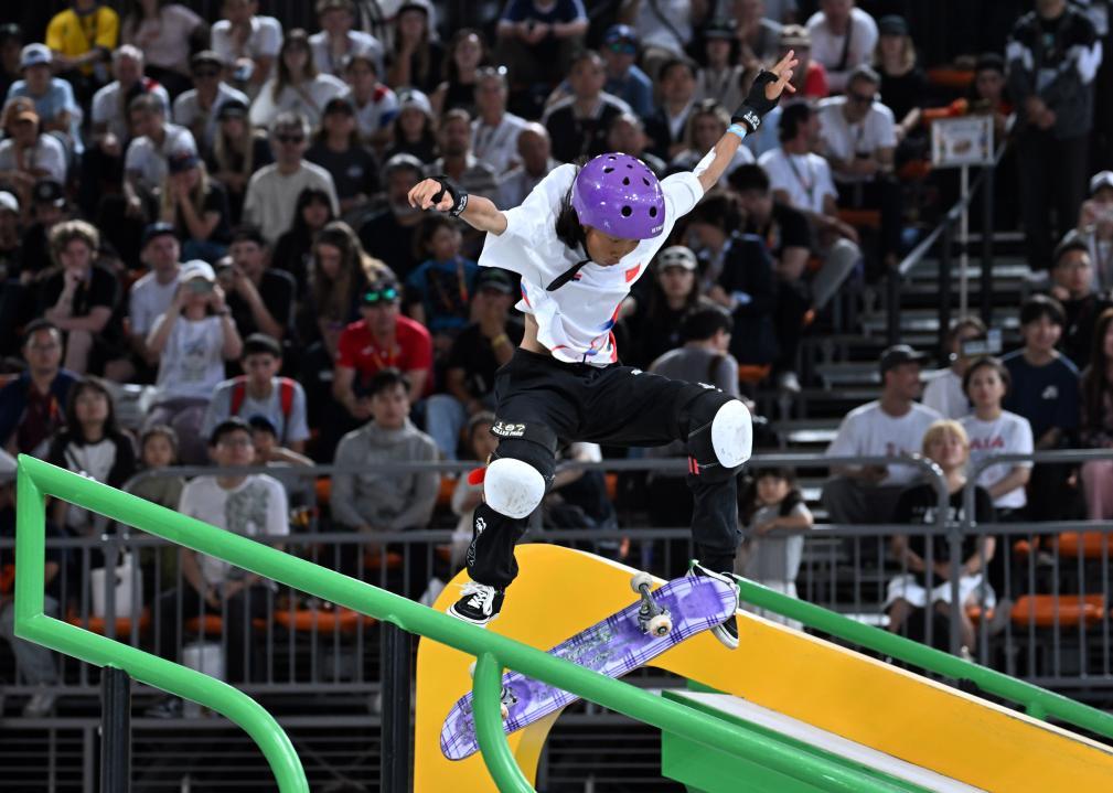滑板項目當日產生了四枚金牌,其中滑板女子街式的競爭最為激烈。巴西選手雷莎·萊亞爾僅以0.54分的優勢獲得冠軍,屈居亞軍的是日本小將赤間凜音,中國選手崔宸曦和曾文蕙分別獲得第五名和第七名。