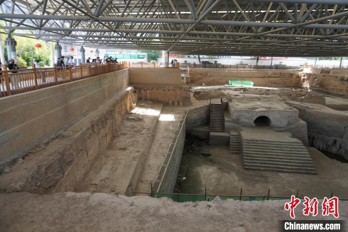5月16日,河南開封,民眾參觀州橋及汴河遺址。中新社記者 韓章云 攝