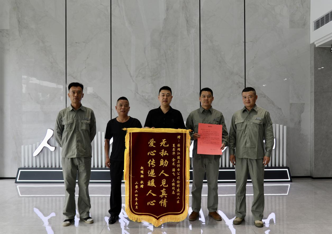 事發后,趙明湘覺得“這樣的先進事跡應該被更多的人知道”,他通過多方打聽想找到這三位“無名英雄”表示感謝,但尋找了一個星期始終沒有結果。最終,通過調取一家超市的監控,確定了救人者開的是電力小黃車,從而確定了救人者就是國網江陵縣供電公司的夏書華、潘飛和金龍三人,于是將感謝信和錦旗送到了國網江陵縣供電公司。