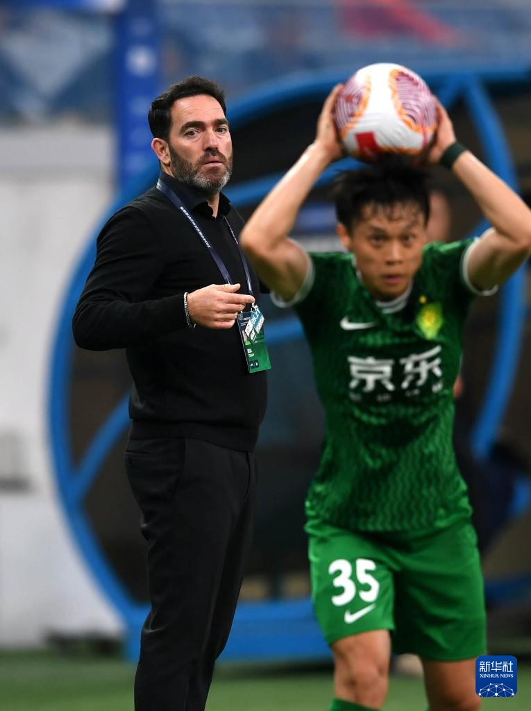 5月21日,北京國安隊主教練里卡多·蘇亞雷斯(左)在場邊觀戰。新華社記者 李紫恒 攝