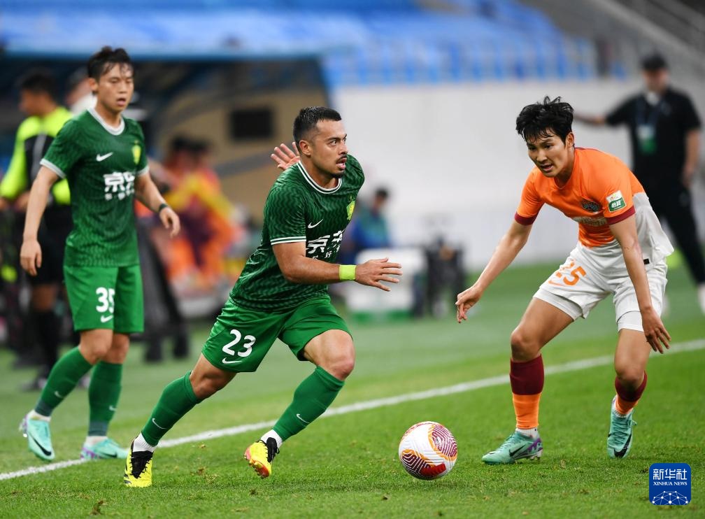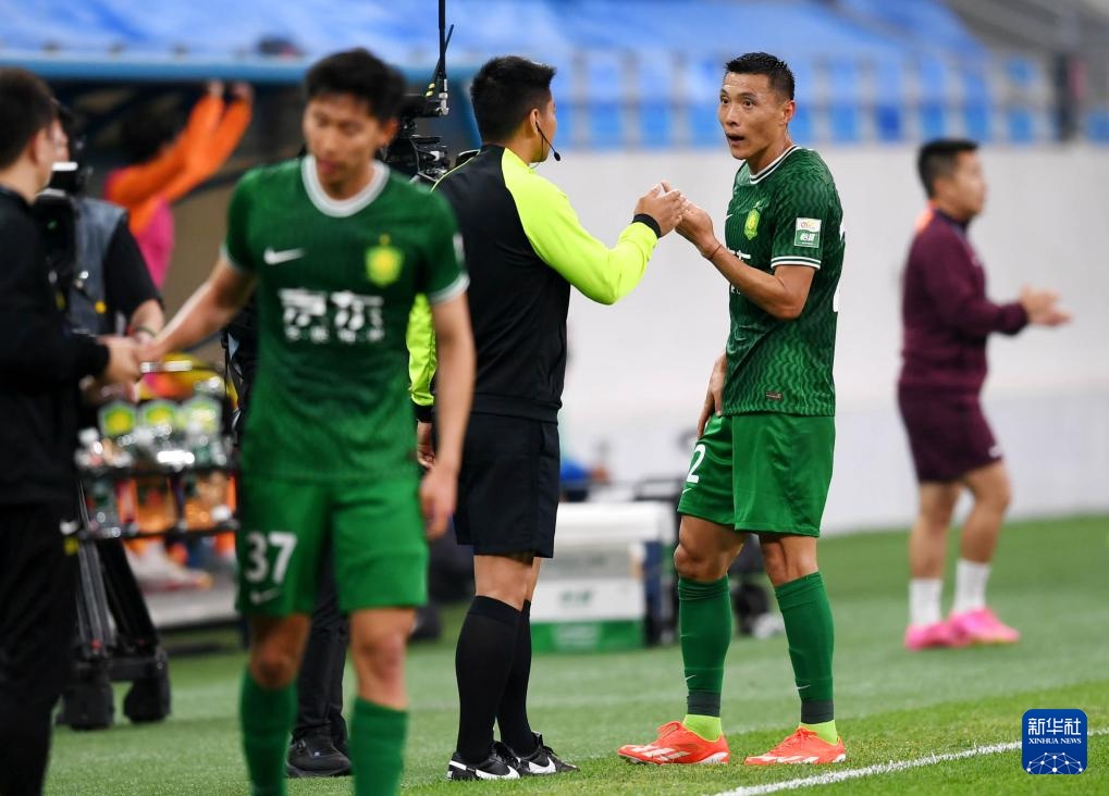 5月21日,北京國安隊球員于大寶(右二)在比賽中。新華社記者 李紫恒 攝