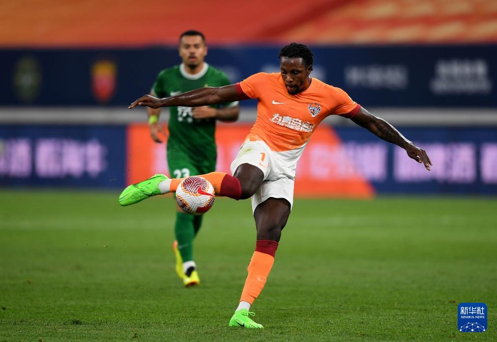 5月21日,青島海牛隊球員博阿基耶(前)在比賽中。新華社記者 李紫恒 攝