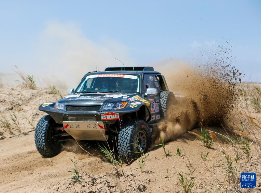 5月21日,陜西沙豹越野俱樂部車手李宇、領航員苗晉華駕駛賽車在比賽中。新華社記者 陳朔 攝