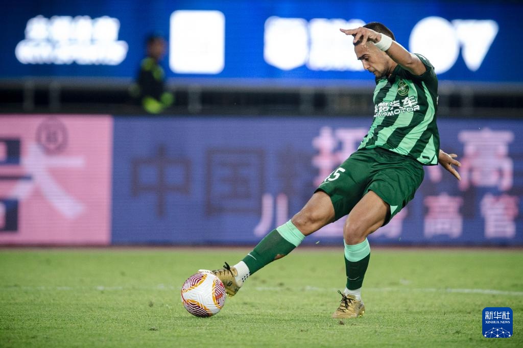 5月21日,浙江隊球員萊昂納多在比賽中射門。新華社記者 江漢 攝