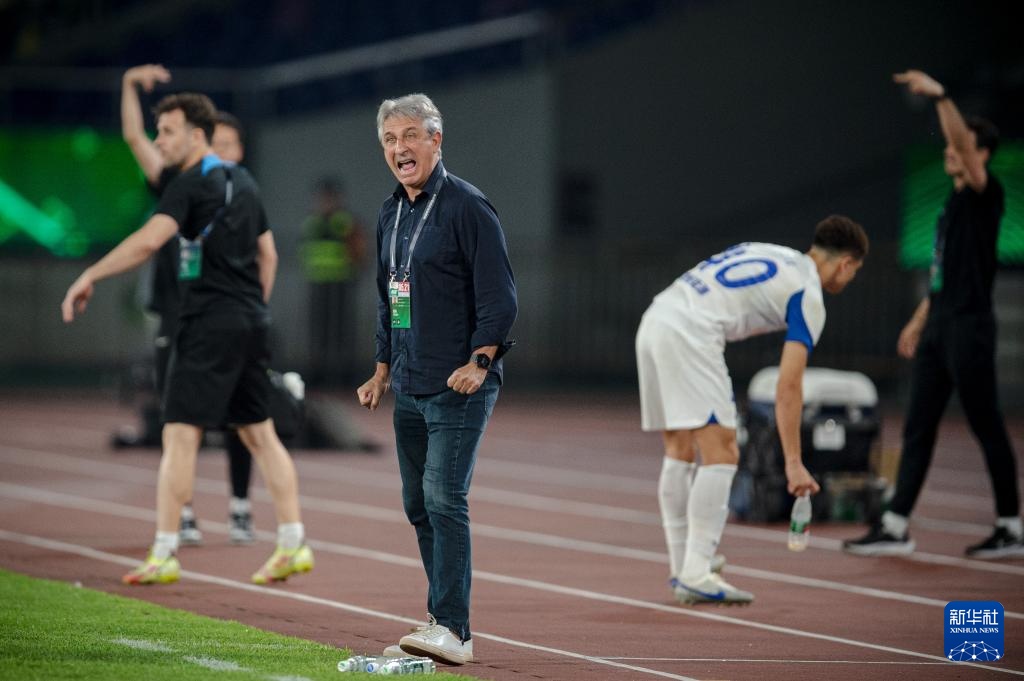 5月21日,浙江隊主教練喬迪(前)在比賽中指揮。新華社記者 江漢 攝