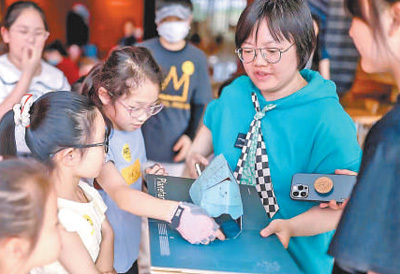 天橋藝術中心的立體書工作坊,工作人員正向孩子們展示立體書。圖為天橋盛世集團提供