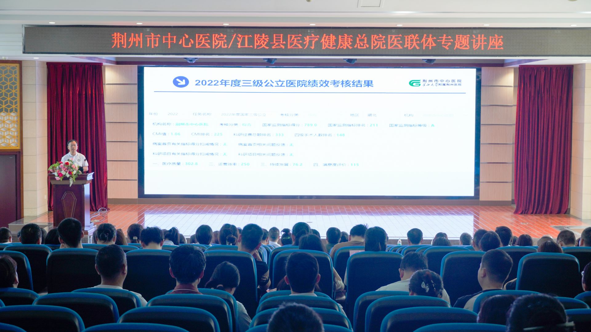 在隨后的講座中,荊州市中心醫院院長梅京松以《創新賦能為引領 推動醫院高質量發展》為題,從荊州市中心醫院發展歷程、現階段改革舉措以及中長期工作規劃要點三個方面,詳細講解了該院近年來改革轉型舉措及未來發展規劃,為江陵縣醫療健康總院各醫聯體單位發展提供了樣本參考。荊州市中心醫院副院長龔道愷以《基于DRG/DIP的臨床科室精細化管理》為題進行了專題講座。