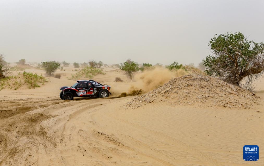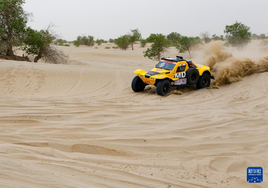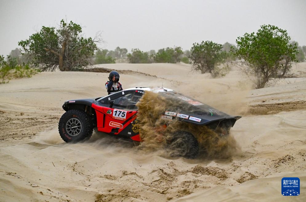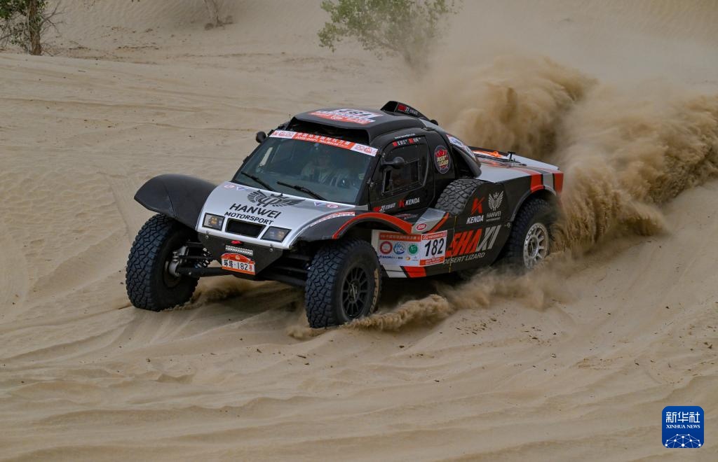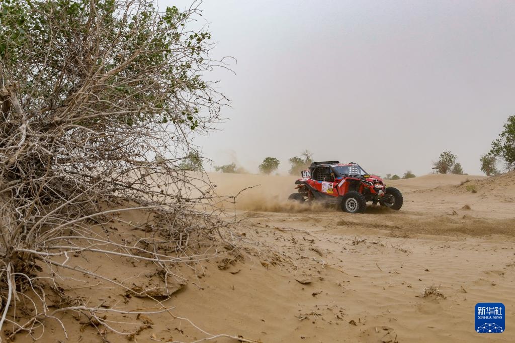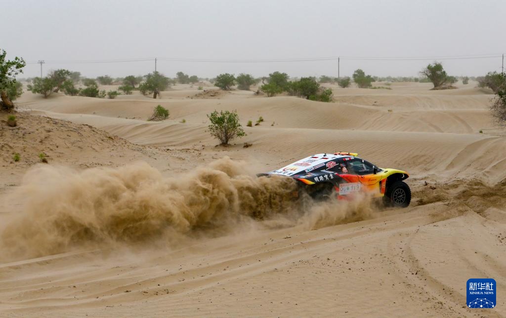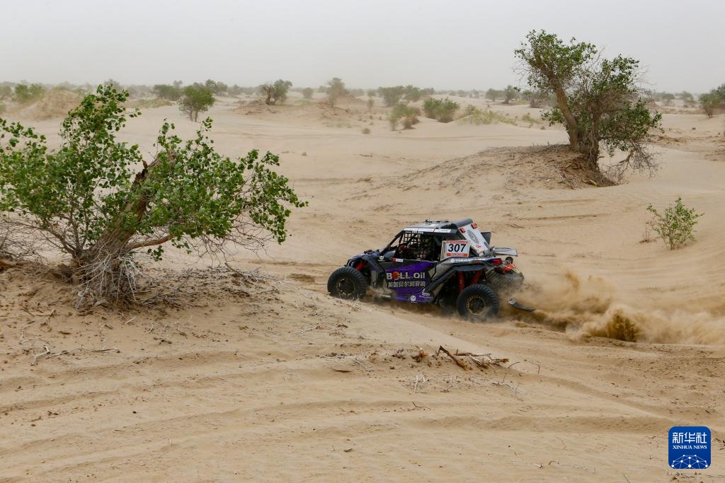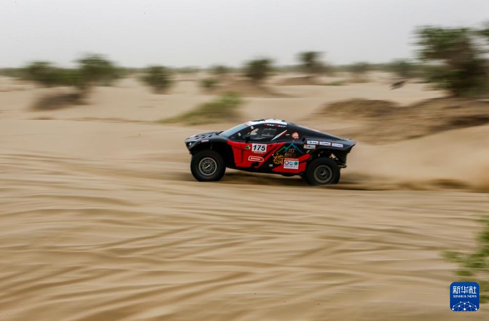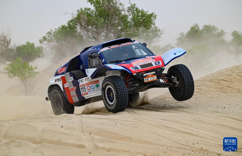 5月23日,沙蜥減震器車隊車手王洪江、領航員閆珂駕駛賽車在比賽中。新華社記者 陳朔 攝