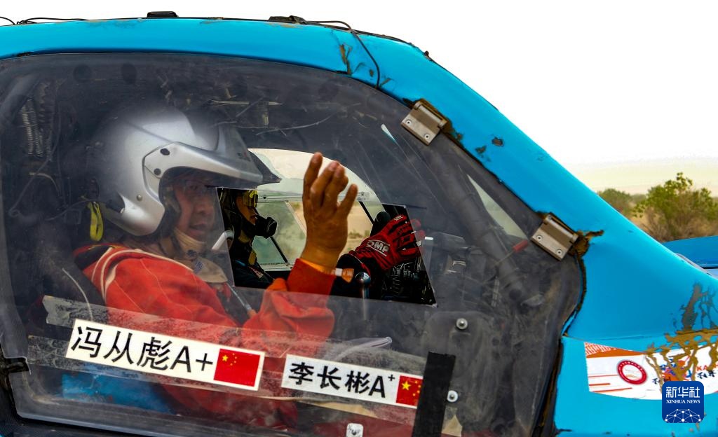 5月23日,沙蜥減震器車隊車手吳強、領航員李潤圃駕駛賽車在比賽中。新華社記者 陳朔 攝