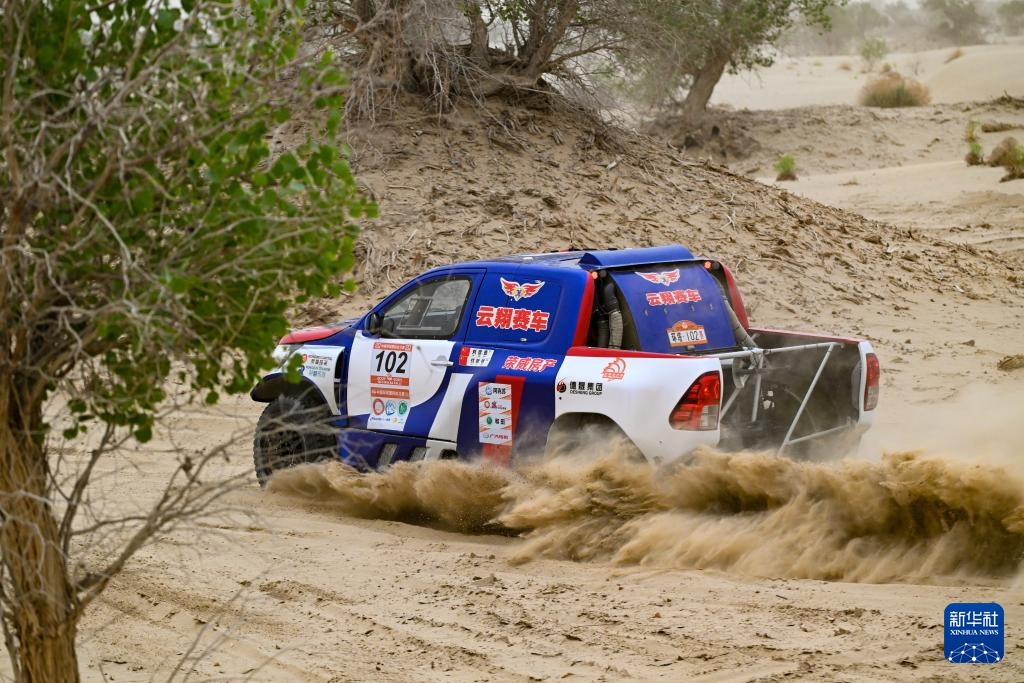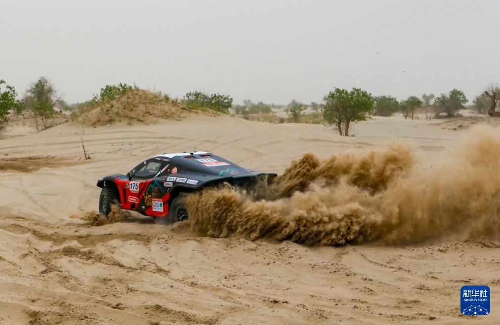 5月23日,陜西云翔汽摩運動有限公司車手訾云剛、領航員馬文科駕駛賽車在比賽中。新華社記者 陳朔 攝