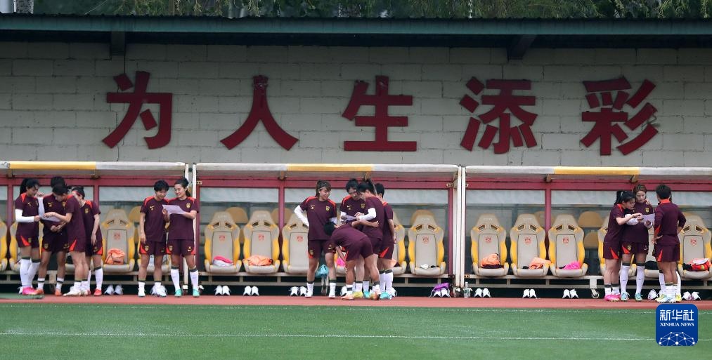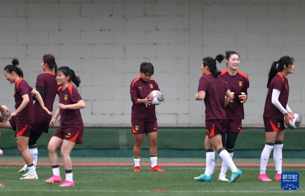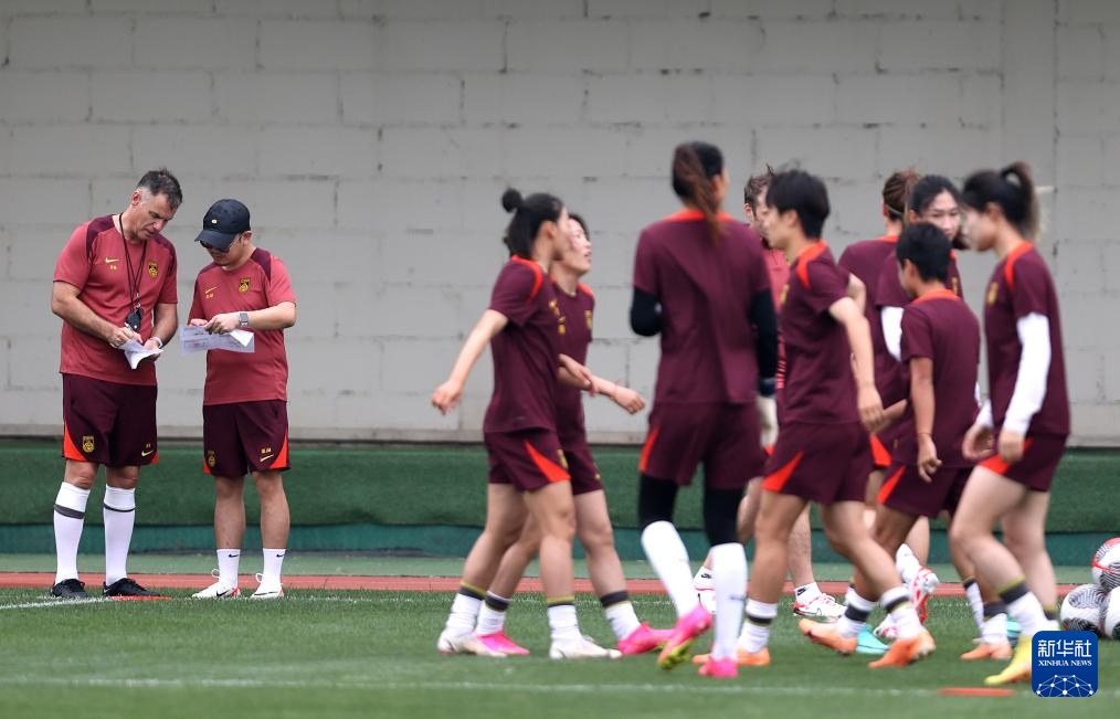 5月23日,中國女足隊員在訓練前做準備。新華社記者 賈浩成 攝