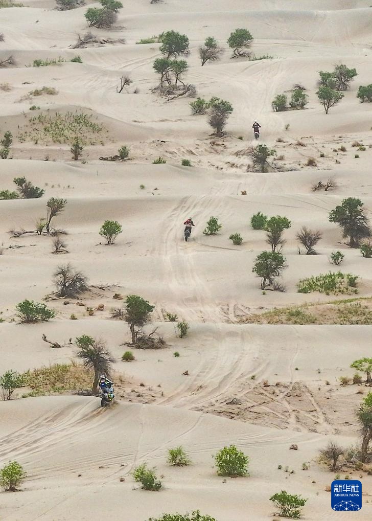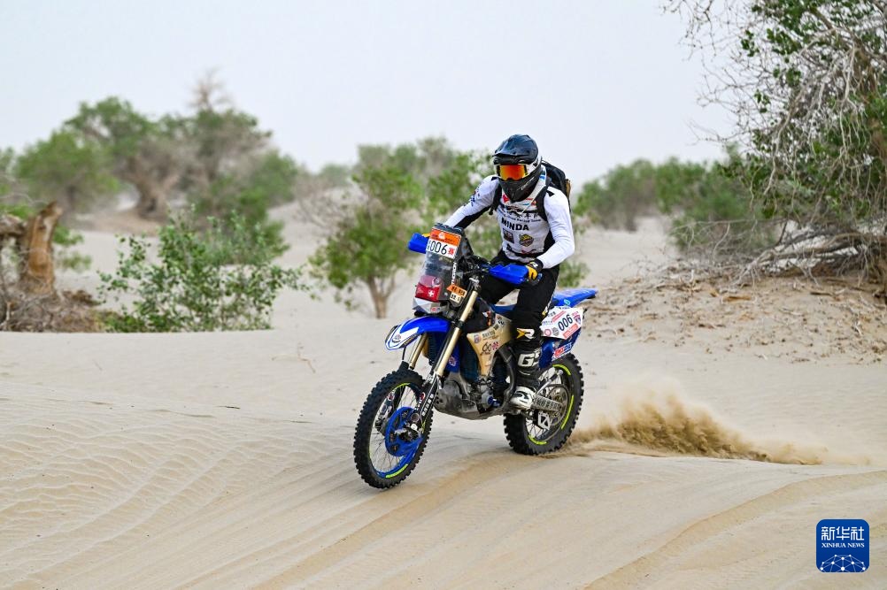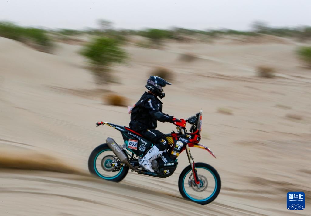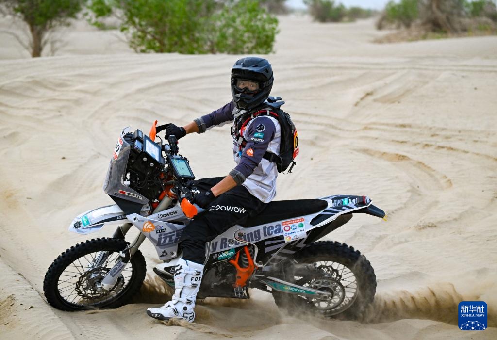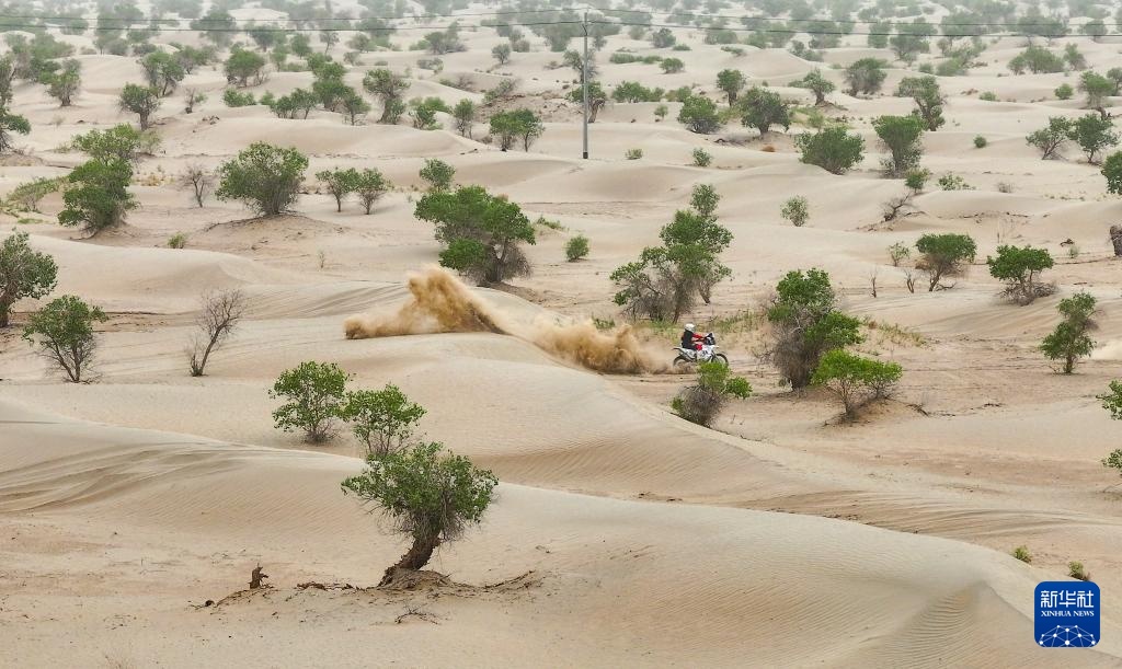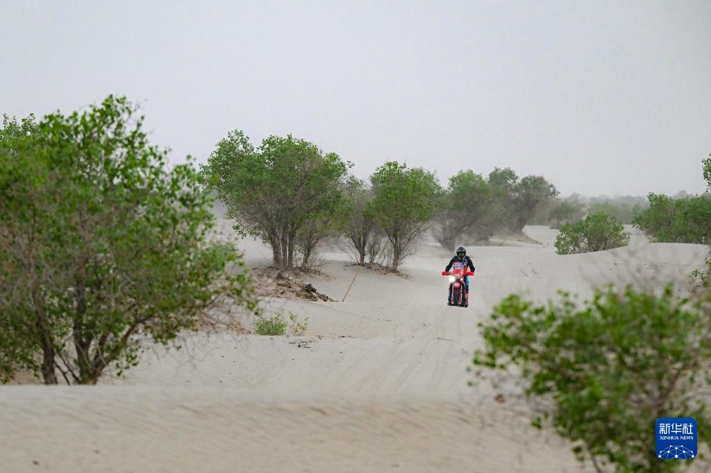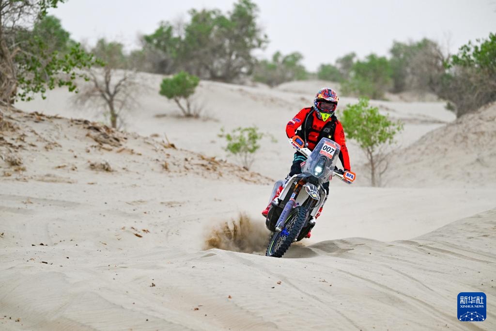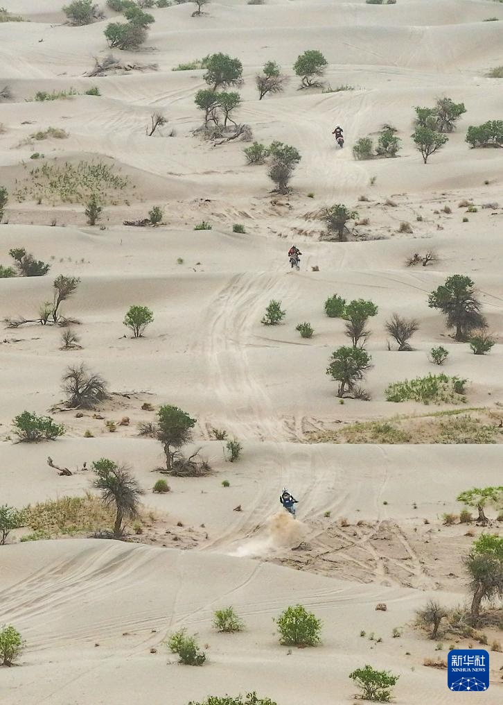 當日,2024年中國環塔國際拉力賽完成第三賽段比賽。該賽段在新疆喀什地區麥蓋提縣的沙漠中,全長原定約280公里。由于天氣原因,摩托車組賽程縮減至約150公里。
