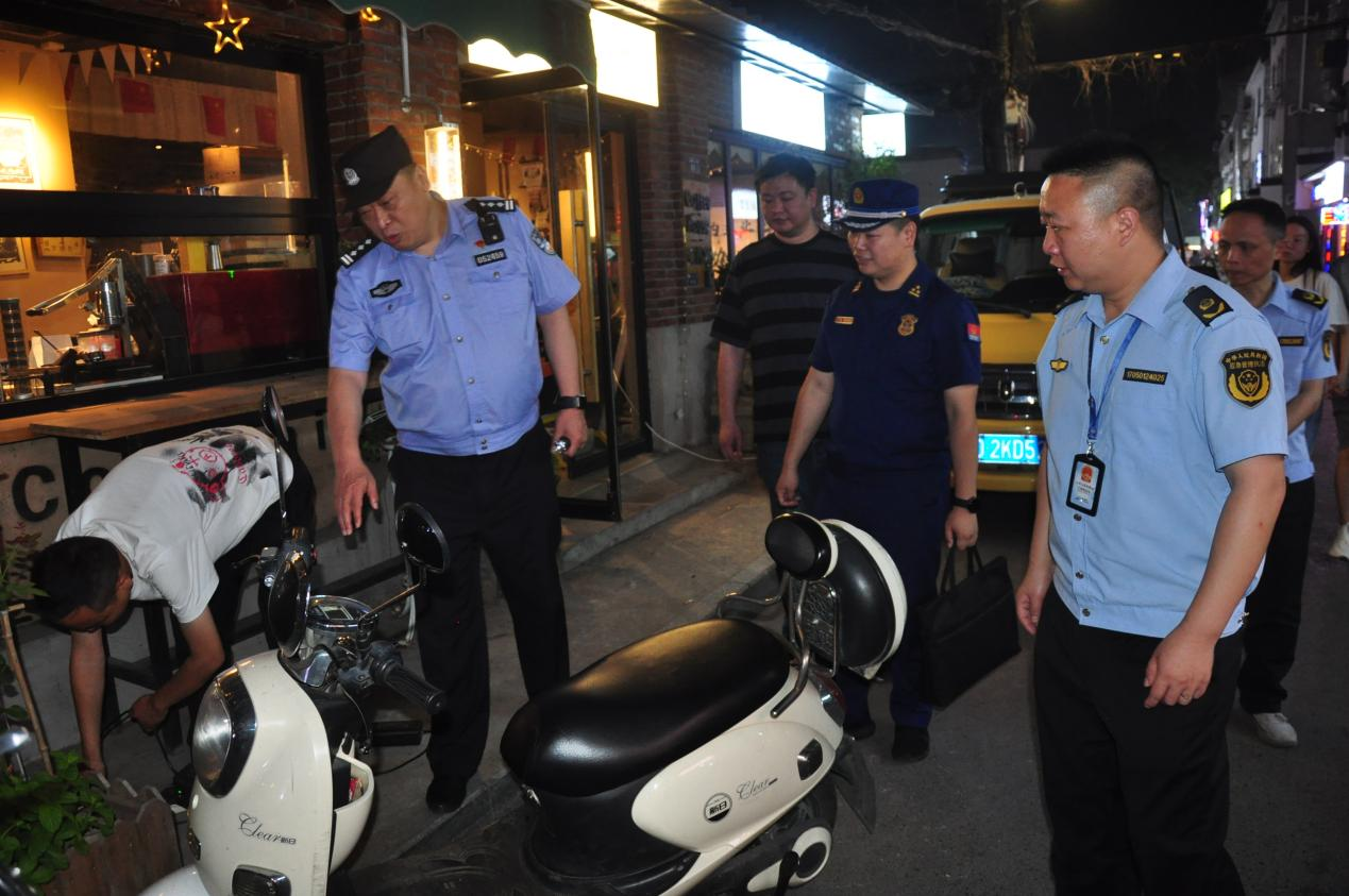 此次夜查全區共檢查住宅小區、自建房、“三合一”場所、沿街門店共800余家,清理違規停放充電的電動自行車300余輛,督促現場整改58處。