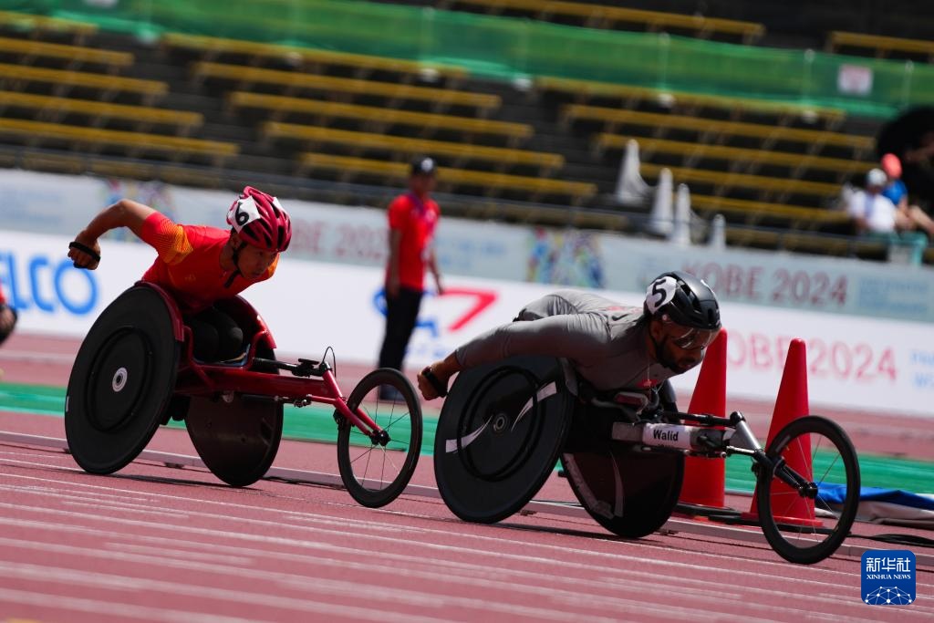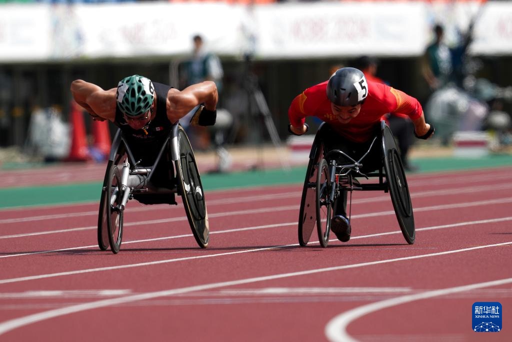5月24日,中國選手龔文浩(左)在男子800米T34級別小組賽中,最終他以1分42秒30的成績晉級決賽。新華社記者 張笑宇 攝