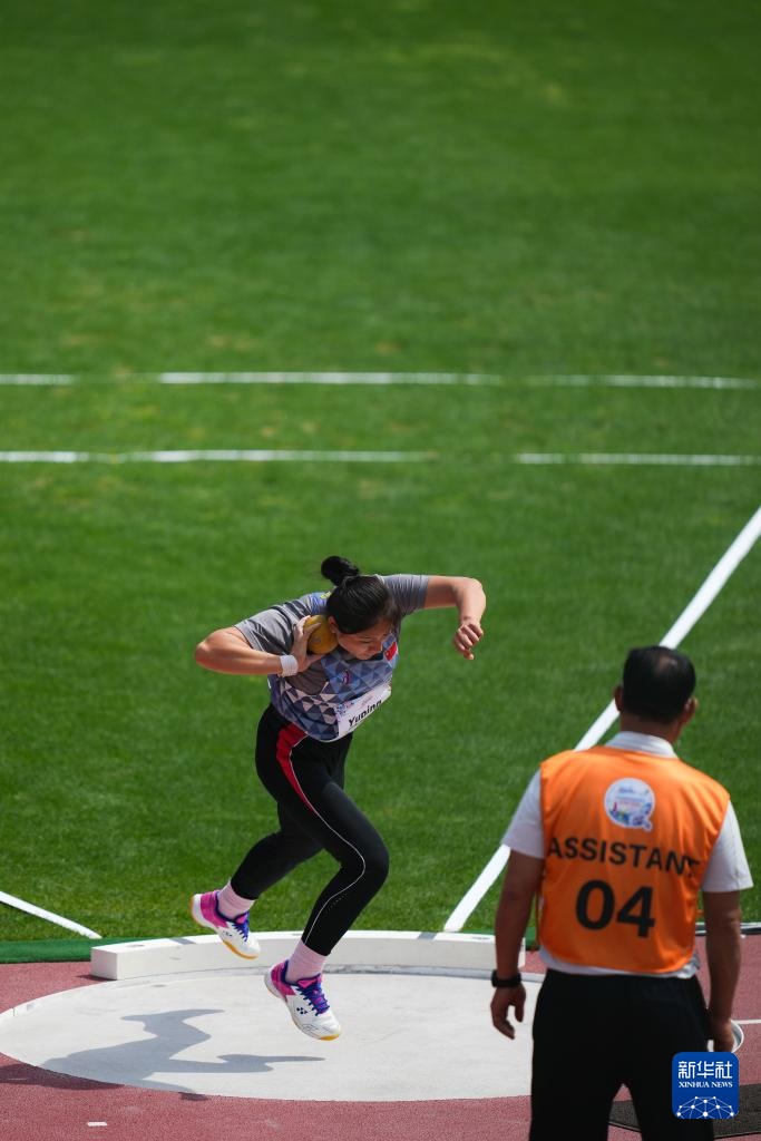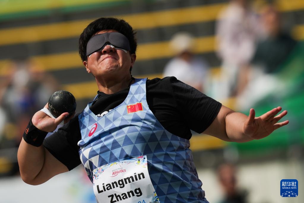 5月24日,中國選手張亮敏在女子鉛球F12級別決賽中,最終她以9米15的成績位列第七。新華社記者 張笑宇 攝