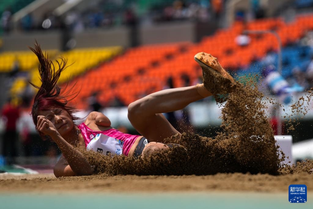 5月24日,中國選手閆靜在女子跳遠T47級別決賽中,最終她以4米77的成績位列第十。新華社記者 張笑宇 攝