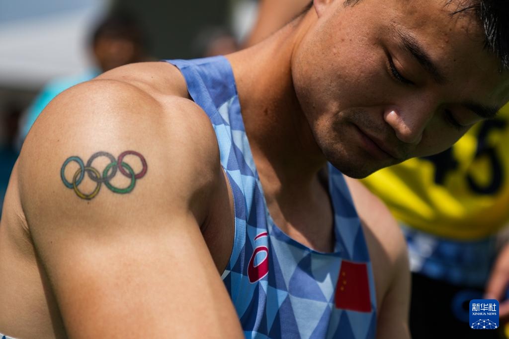 5月24日,中國隊選手胡洋在4X100米混合接力預賽后,最終中國隊以45秒66的成績晉級決賽。新華社記者 張笑宇 攝