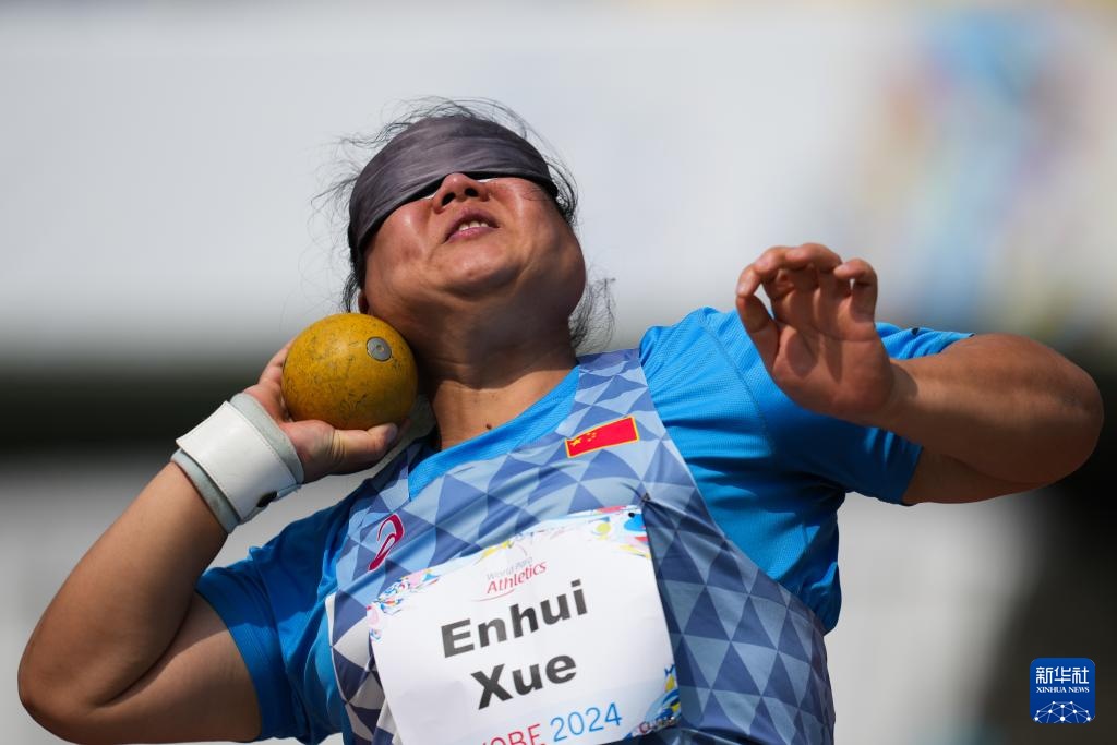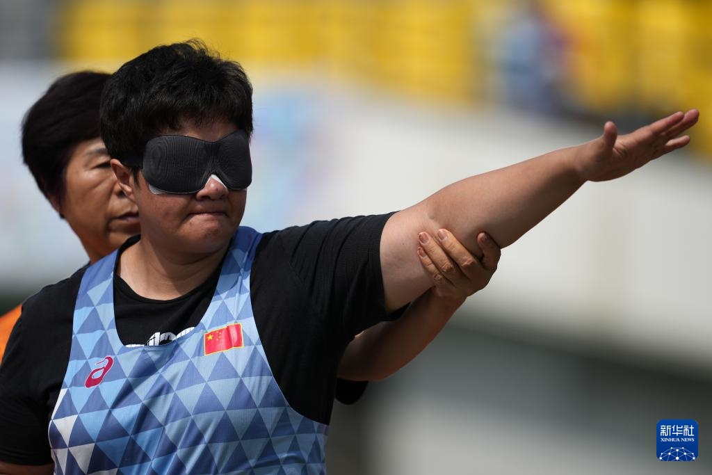 5月24日,中國選手薛恩慧在女子鉛球F12級別決賽中,最終她以11米00的成績獲得季軍。新華社記者 張笑宇 攝