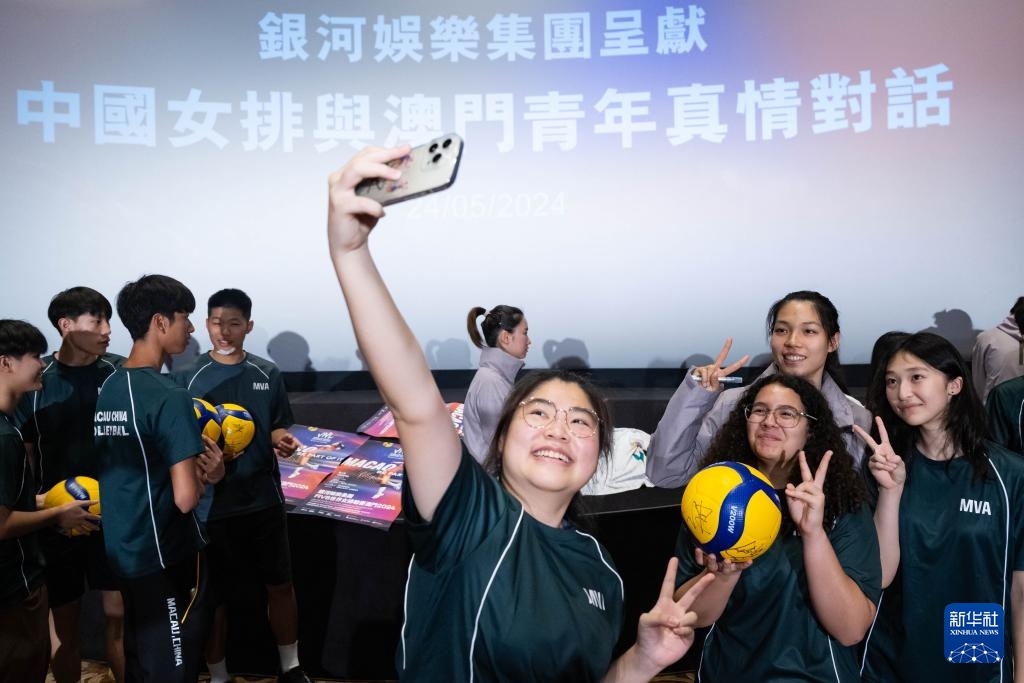 當日,中國國家女子排球隊部分隊員在澳門與青少年球員見面,交流比賽及訓練心得。中國女排將參加5月28日至6月2日在澳門銀河綜藝館舉行的2024世界女排聯賽澳門站賽事。