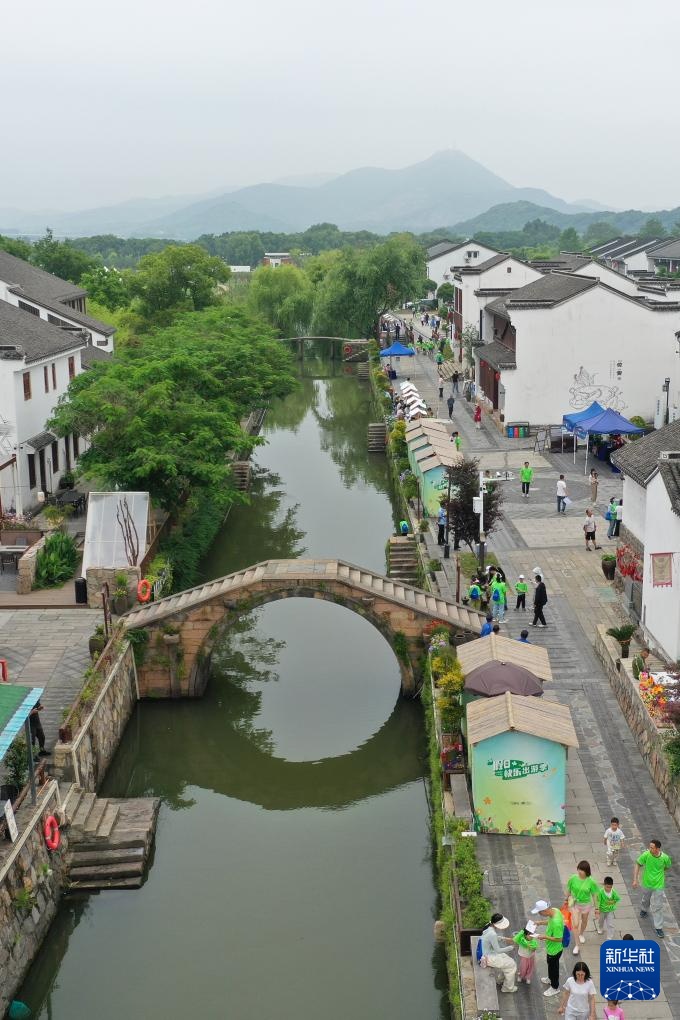 5月25日,參加定向賽的選手經過八里店鎮潞村古村(無人機照片)。新華社記者 黃宗治 攝
