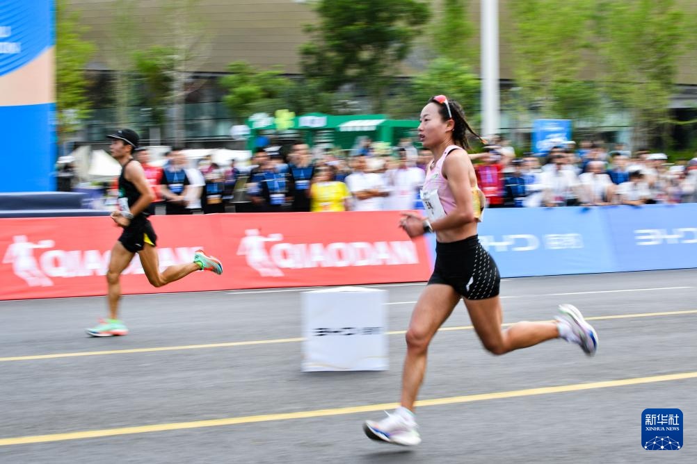 5月26日,中國選手鐘佳萌在比賽中。最終,她以2小時41分11秒的成績獲得女子馬拉松中國籍參賽選手第二名。新華社記者 郎兵兵 攝