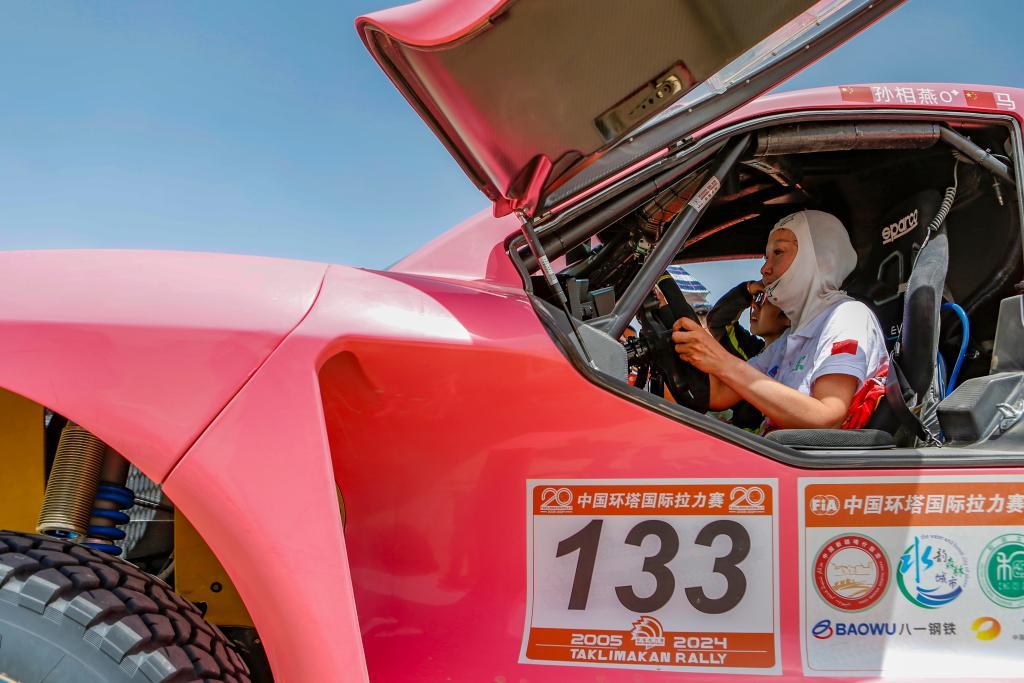 母女倆駕駛著一臺粉色賽車,飛馳在高低起伏的金黃沙海中,顯得格外亮眼。在逐漸適應拉力賽節奏后,馬欣展現出不俗的潛力,幫助孫相燕在單賽段一度沖至前35名。賽程過半,孫相燕對女兒的表現非常滿意。