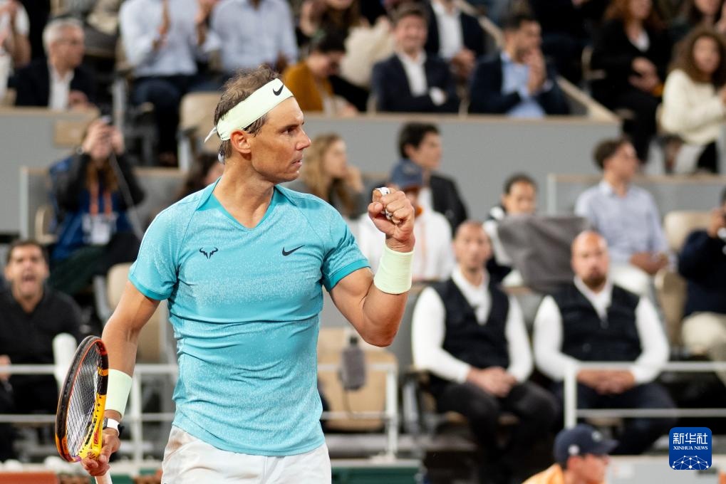 5月27日,納達爾在比賽中慶祝得分。新華社記者 孟鼎博 攝
