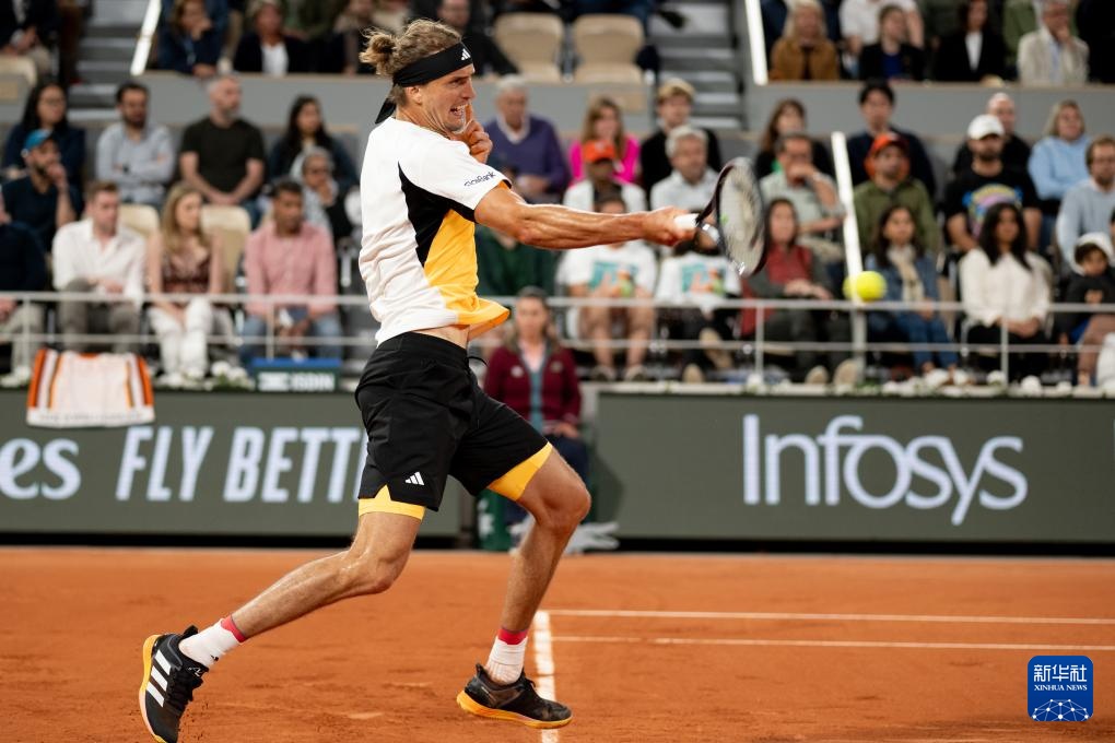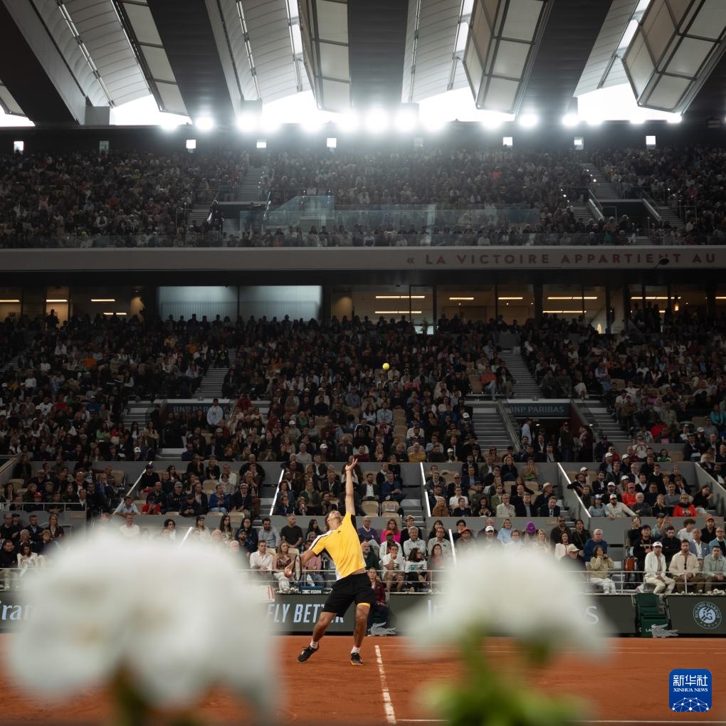 5月27日,茲維列夫在比賽中回球。新華社記者 孟鼎博 攝