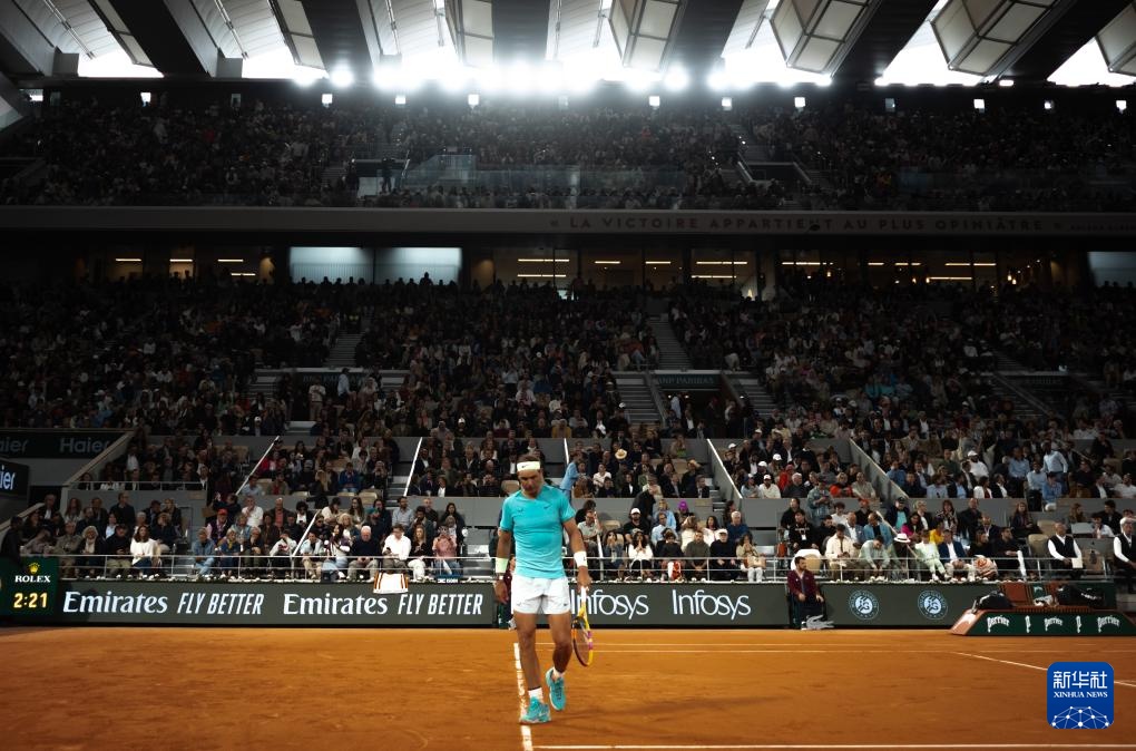 5月27日,納達爾在比賽后向球迷致意。新華社記者 孟鼎博 攝