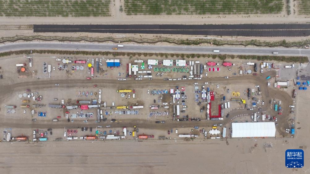 這是5月27日拍攝的2024年中國環(huán)塔國際拉力賽和田洛浦大營(無人機(jī)照片)。新華社記者 陳朔 攝