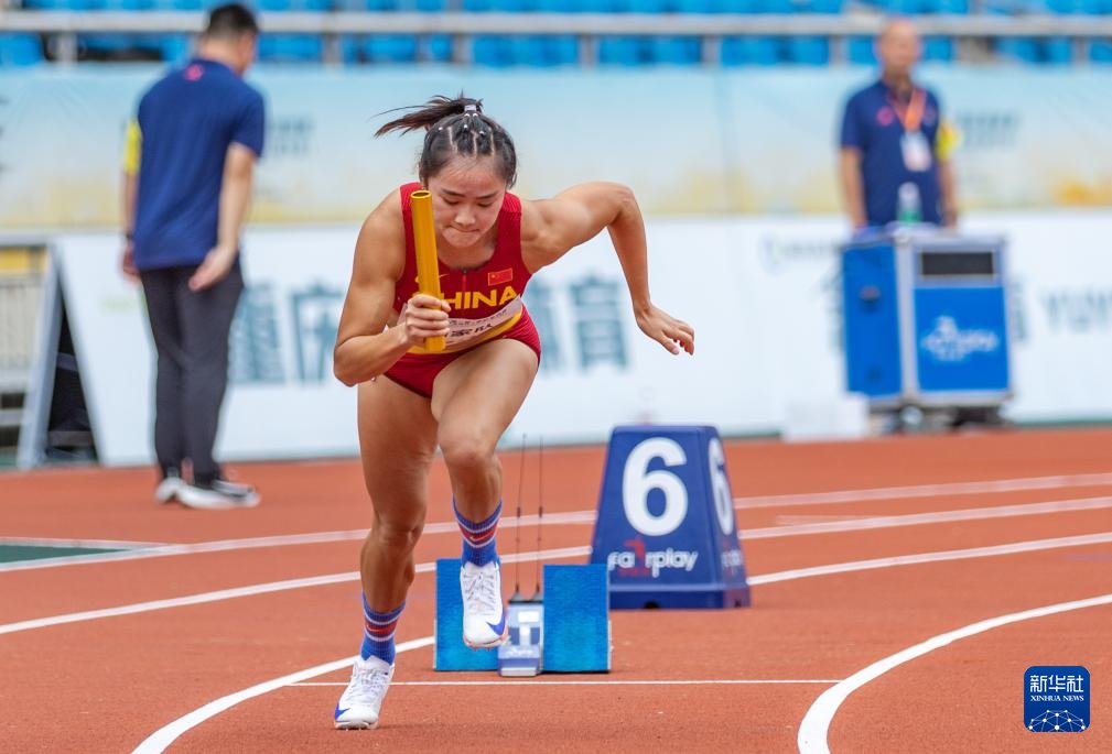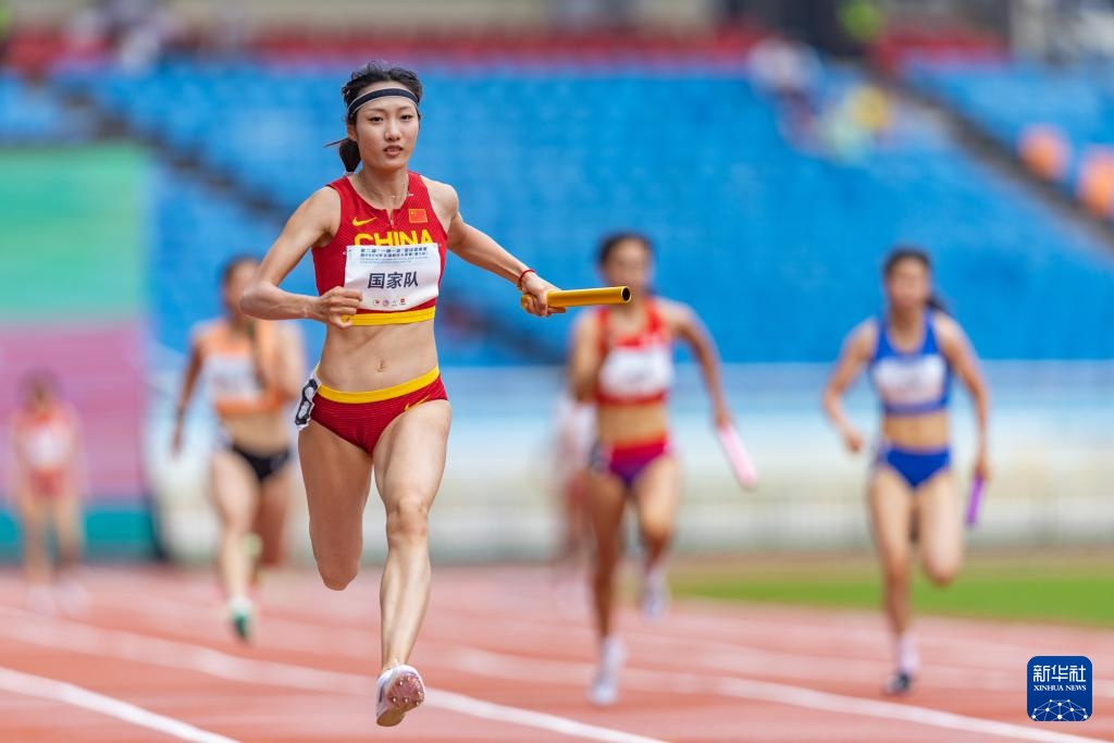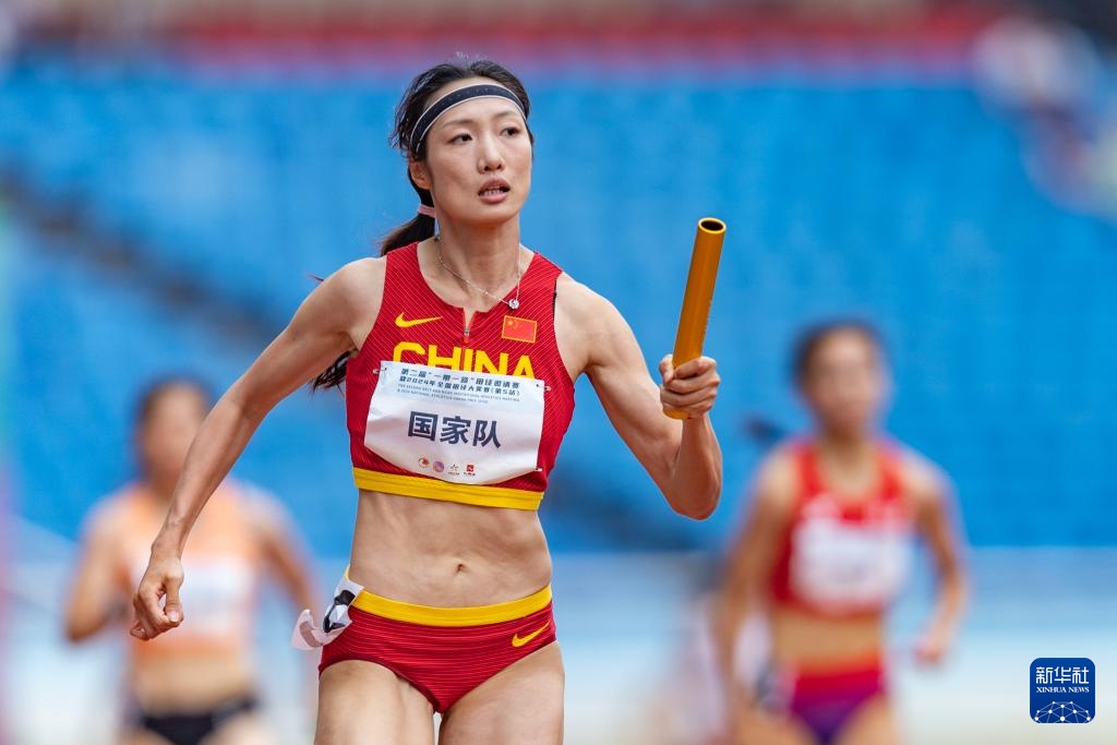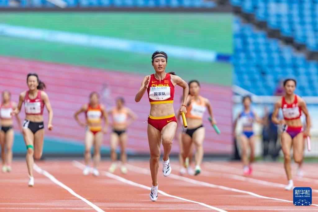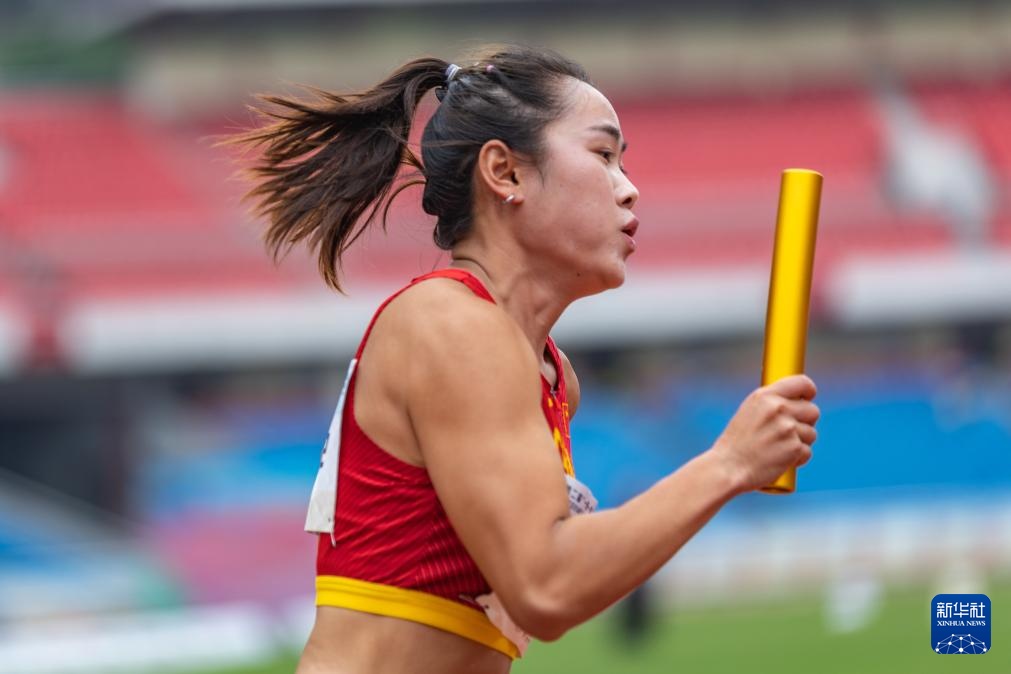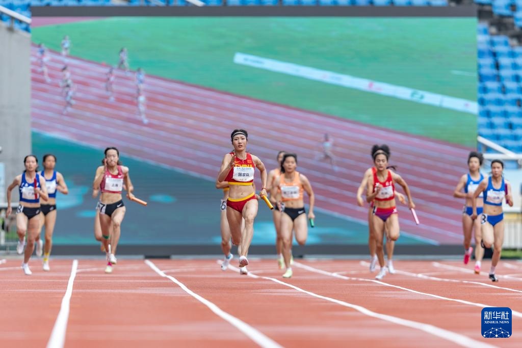 5月28日,國家隊第一棒梁小靜在比賽中起跑。新華社記者 黃偉 攝
