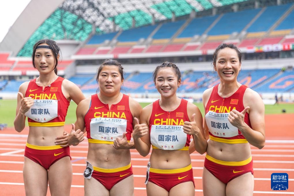 5月28日,國家隊第一棒梁小靜(右)在比賽中起跑。新華社記者 黃偉 攝