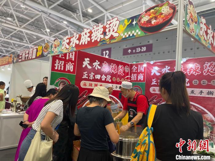 5月25日,第二十屆中國(深圳)國際文化產業博覽交易會現場,參觀民眾在天水麻辣燙攤位前排隊。 中新社記者 高紅超 攝