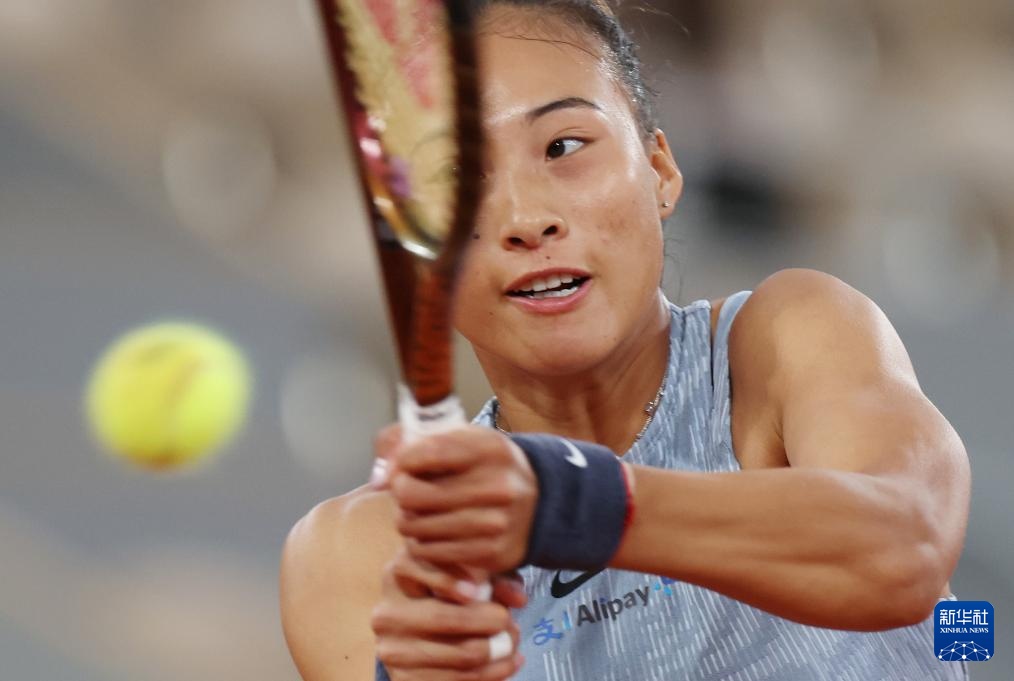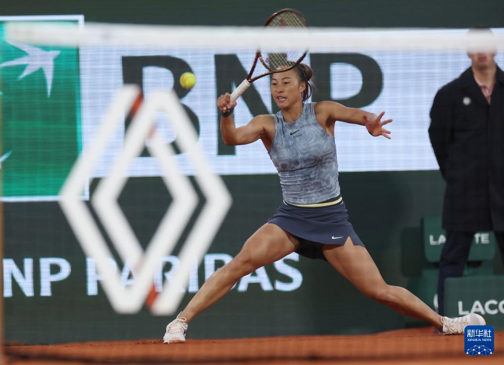 5月28日,鄭欽文在比賽中回球。新華社記者 高靜 攝