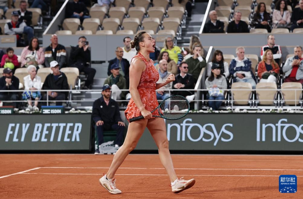 5月28日,薩巴倫卡在比賽中慶祝得分。新華社記者 高靜 攝